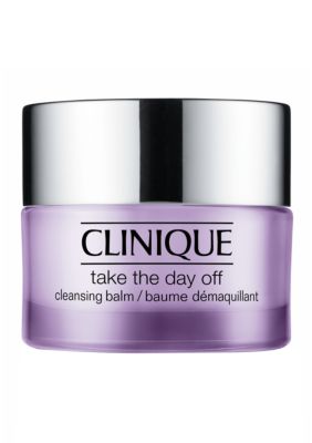 Clinique s lightweight take the day off cleansing balm quickly dissolves tenacious eye and face makeups as well as sunscreens. What it does this powerful oil dissolves all traces of makeup and impurities. Take the day off. Recommended for all skin types it easily glides on and rinses off cleanly with water leaving no residue behind.