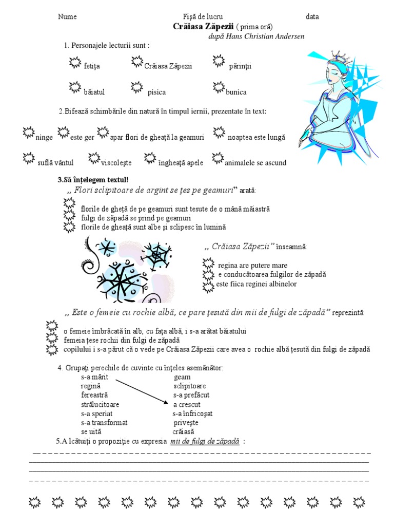 Fisa De Lectura Craiasa Zapezii H C Andersen Identitate