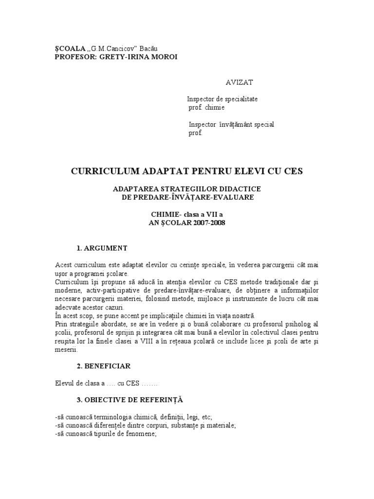 Doc Curriculum Adaptat Pentru Elevi Cu Ces Octavia Negrean Academia Edu