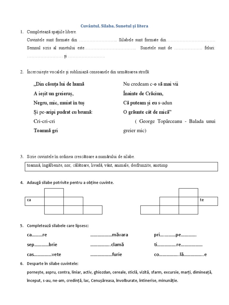 Romana Cuvantul Silba Sunetul Litera Docx