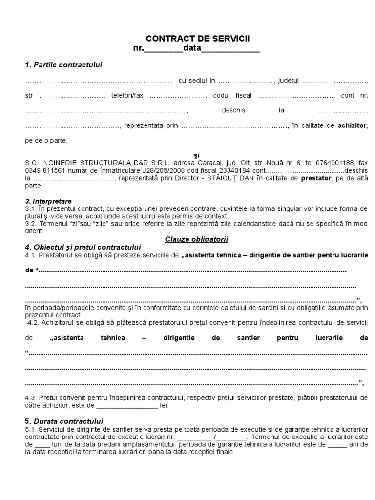 Contract Servicii Dirigentie Santier Pj