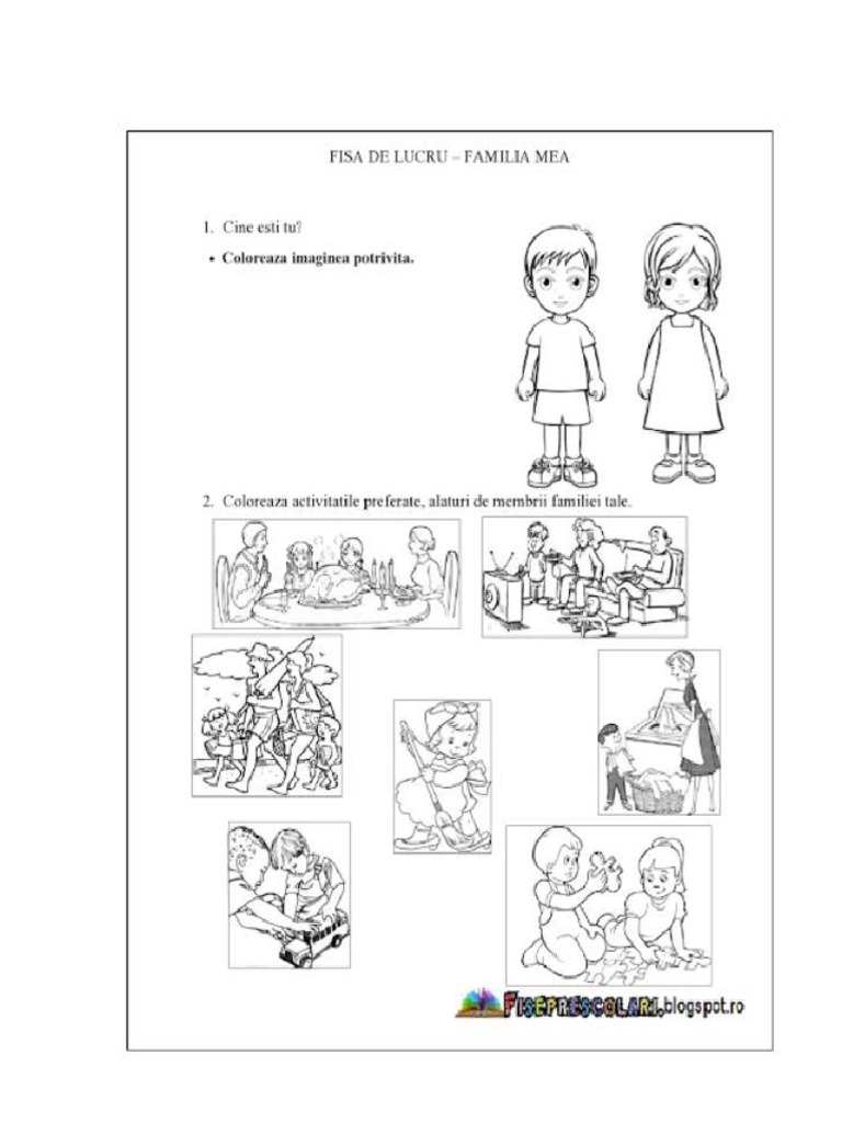 Un Blog Ce Cuprinde Planse De Colorat Si Fise De Lucru Pentru Copii Acest Blog Vine Ca Un Ajutor In Intampinarea Cadr Family Cartoon Kindergarden Family Theme