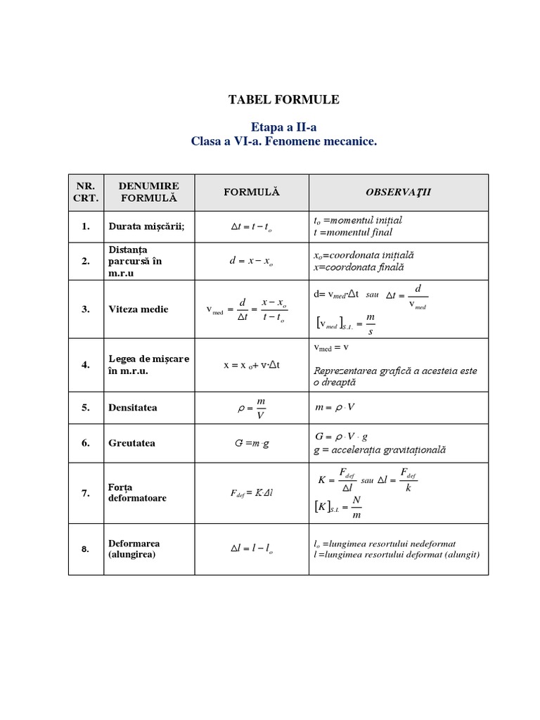 Formule Fizica Pentru Gimnaziu