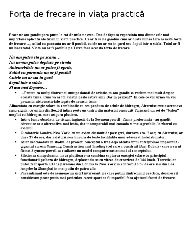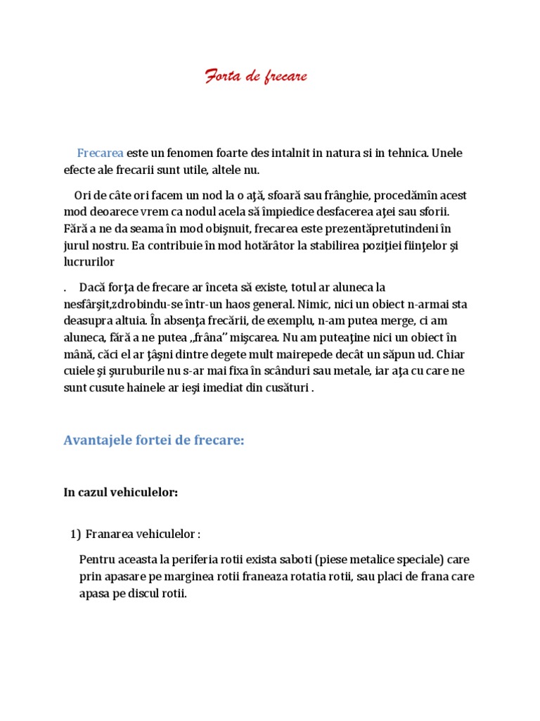 Forta De Frecare Referat
