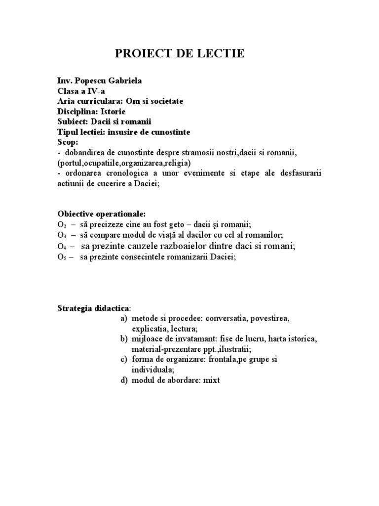 Proiect Dacii Si Romanii Proiect Didactic Pedagogie 380643