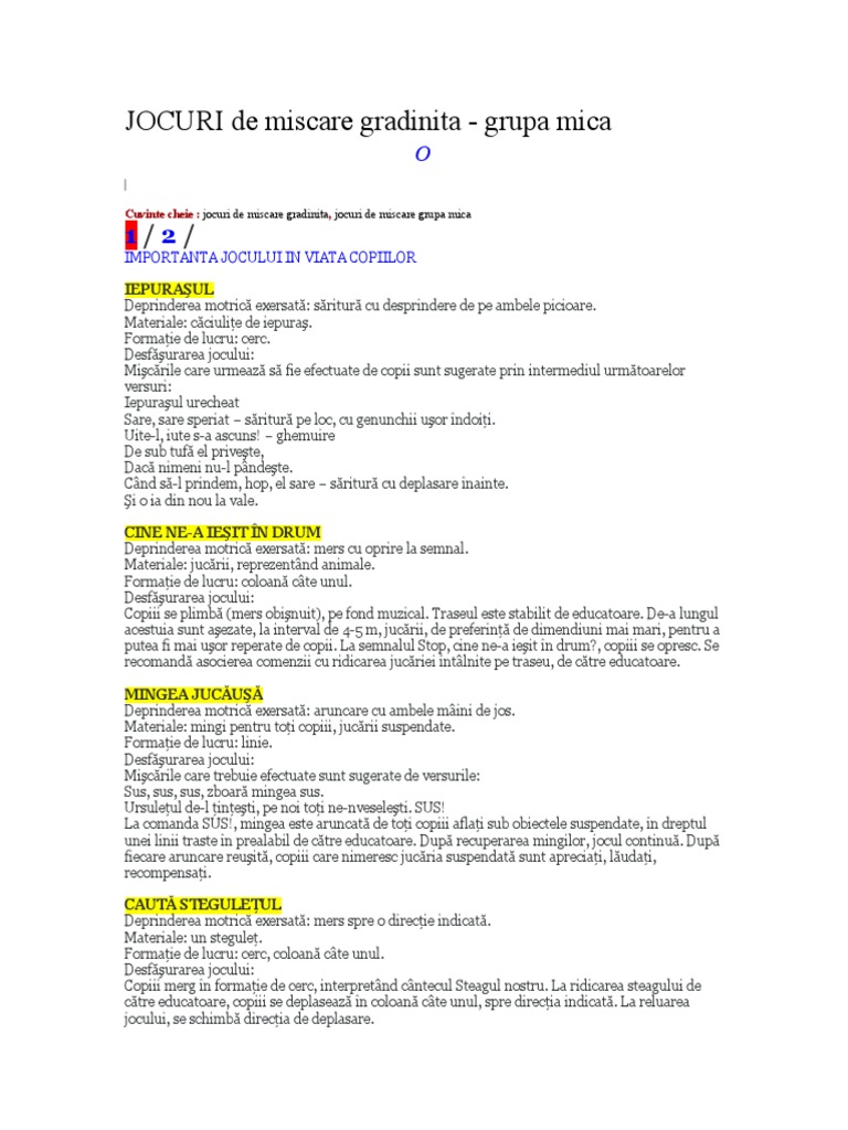 Jocuri De Miscare Gradinita Grupa Mica