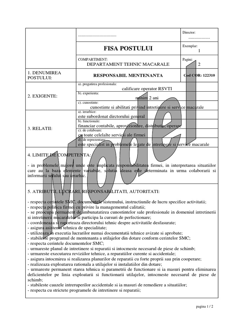 Fisa Post Responsabil Mentenanta