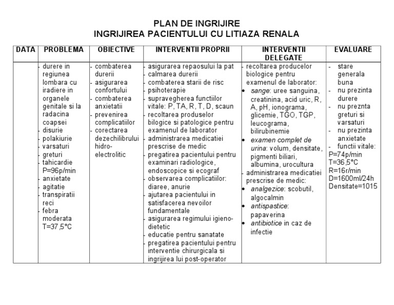 Plan De Ingrijire Litiaza Renala