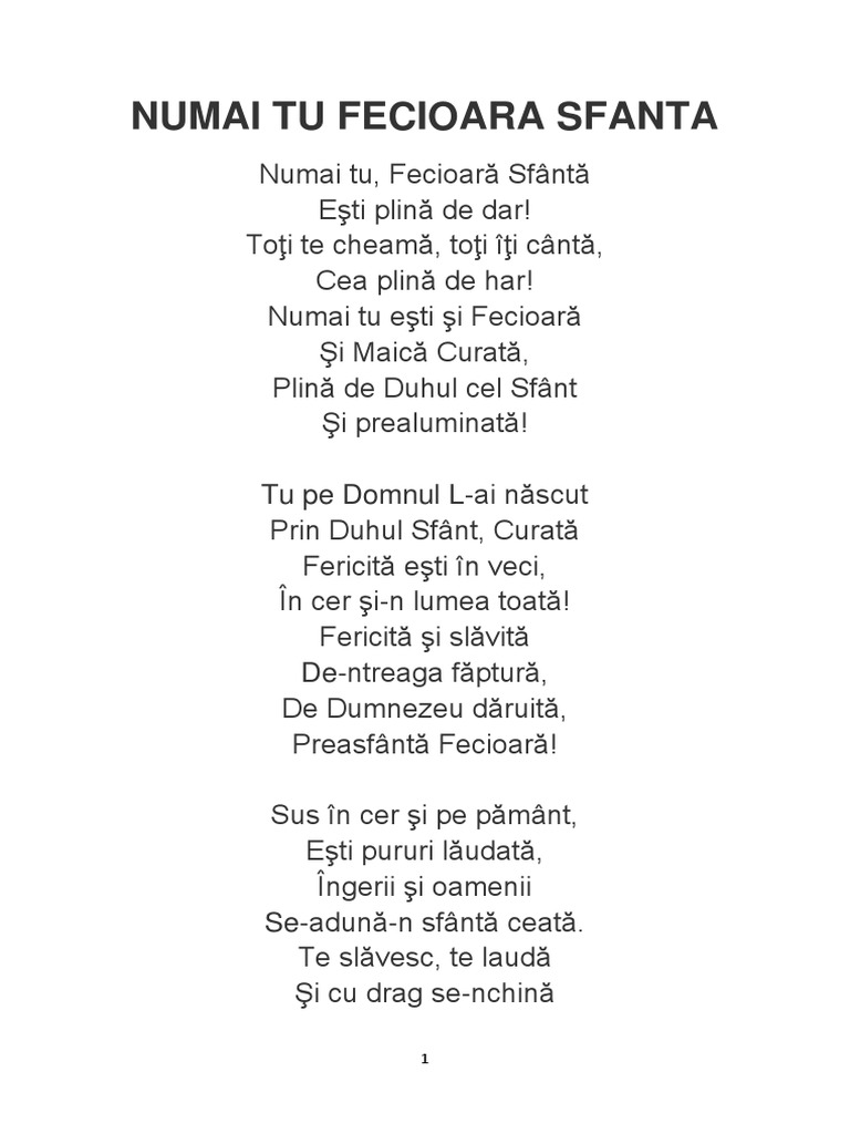 Numai Tu Fecioara Sfanta Versuri