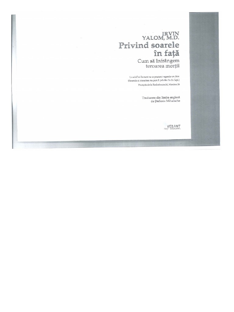 Pdf Irvin Yalom Privind Soarele In Fata Cenusa Maria Academia Edu