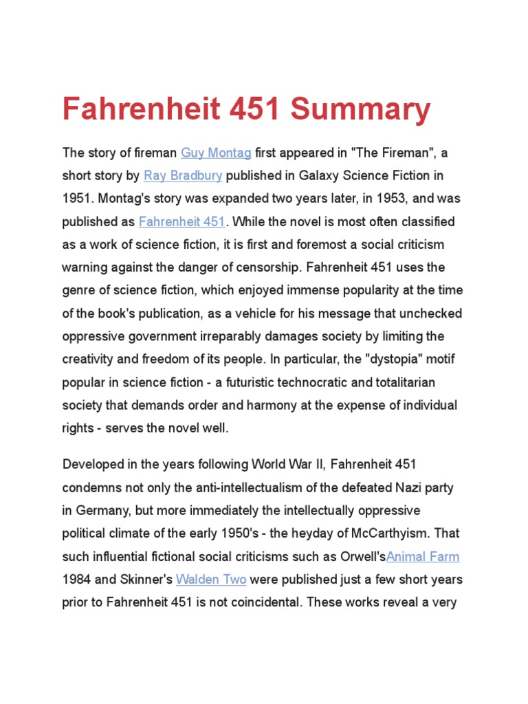 Fahrenheit 451 Pdf Summary Ray Bradbury 12min Blog