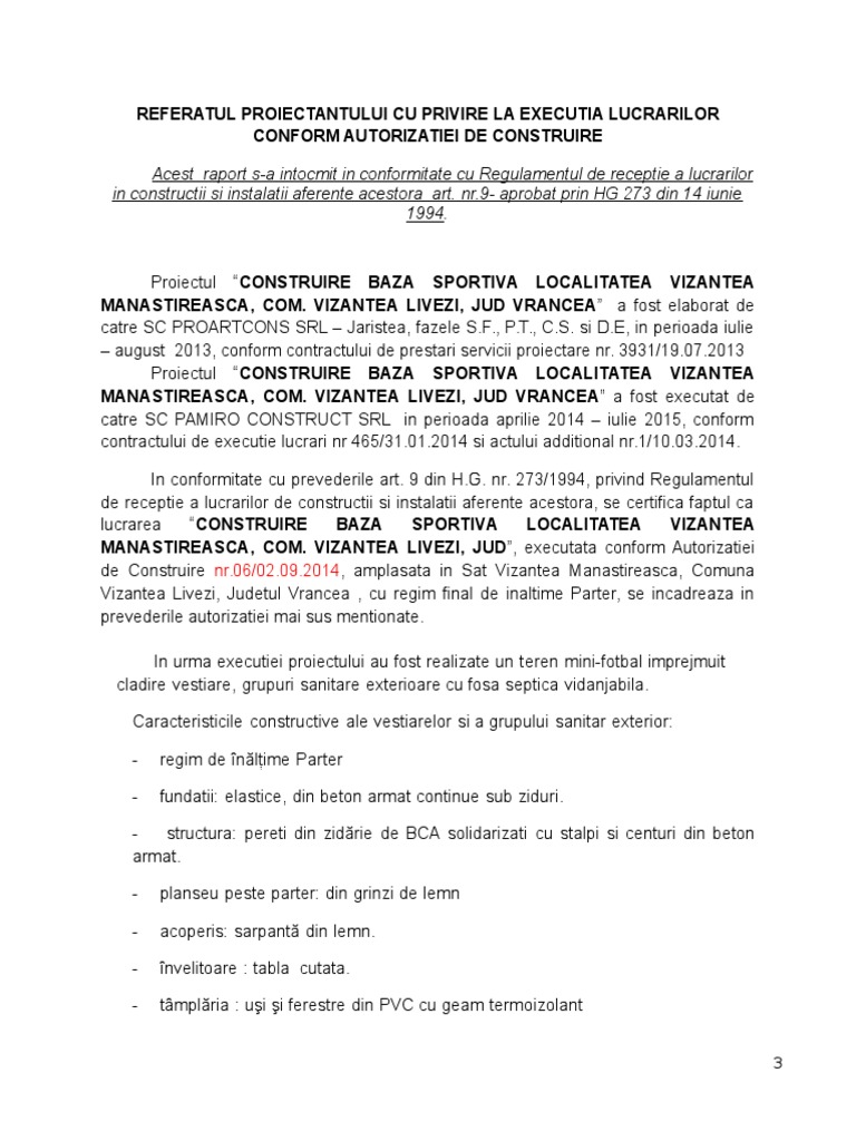 Referatul Proiectantului Terminarea Lucrarilor Model