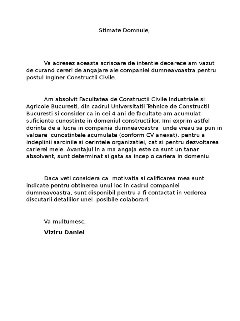 Doc Model Scrisoare De Intentie Bosinceanu Ioana Academia Edu