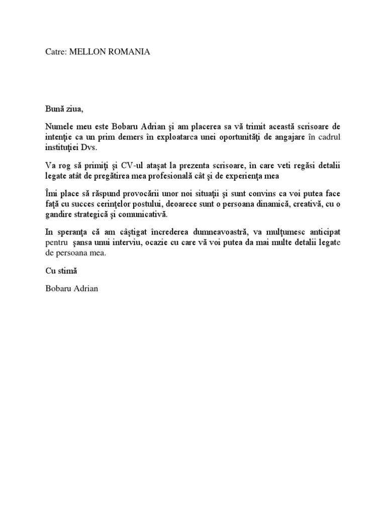 Scrisoare De Intentie Calciu
