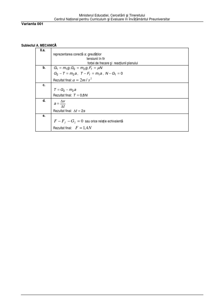 Raspunsuri La Subiectul 1 Variante Fizica Mecanica