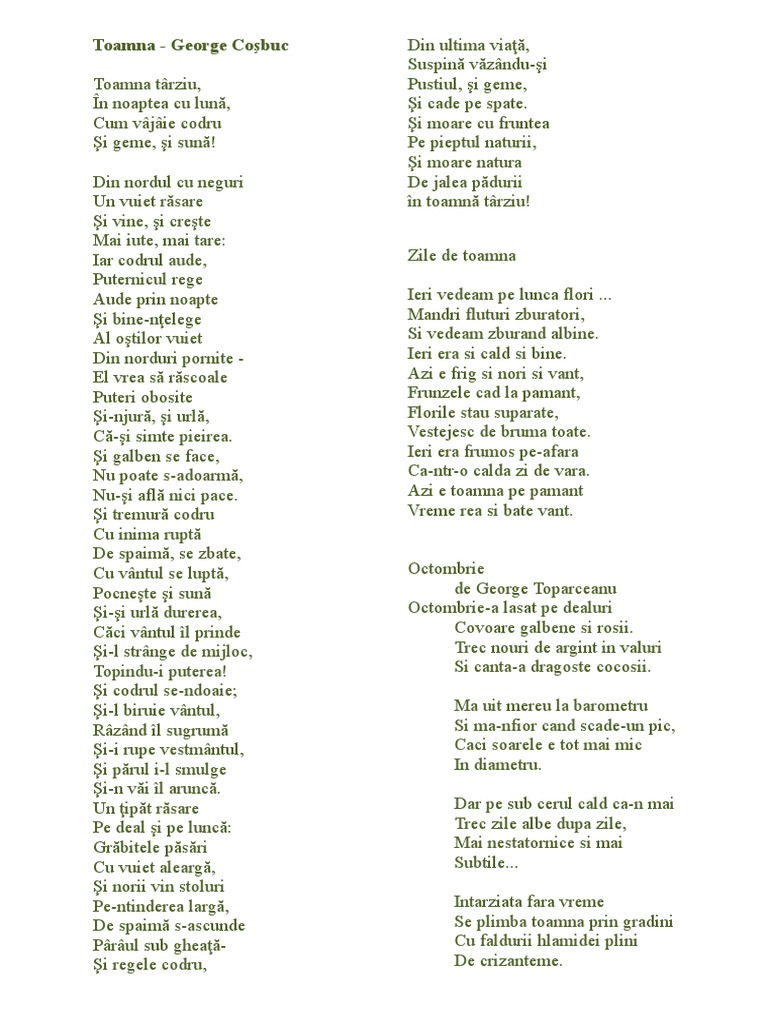 Poezii Despre Toamna De George Cosbuc